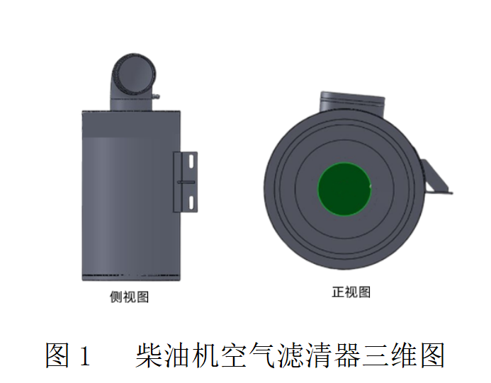 空氣濾清器的功用是濾除空氣中的灰塵及雜質,將清潔的空氣送入氣缸內,以減少活塞連桿組、配氣機構和氣缸磨損。對空氣濾清器的要求是濾清效率高、阻力小、應用周期長且保養方便,外形三維圖如圖1所示。