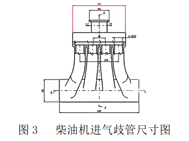 對于直噴式柴油機,進氣歧管只是將潔凈的空氣分配到各缸進氣道,如圖3所示。進氣歧管必須將空氣、 燃油混合氣或潔凈空氣盡可能均勻地分配到各個氣缸,為此進氣歧管內氣體流道的長度應盡可能相等。為了減小氣體流動阻力,提高進氣能力,進氣歧管的內壁應該光滑。