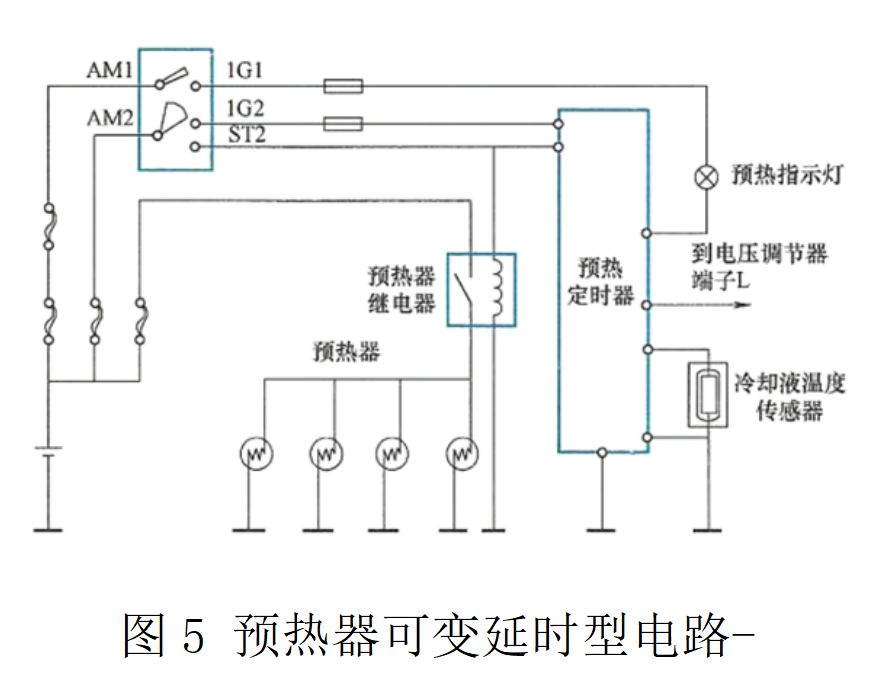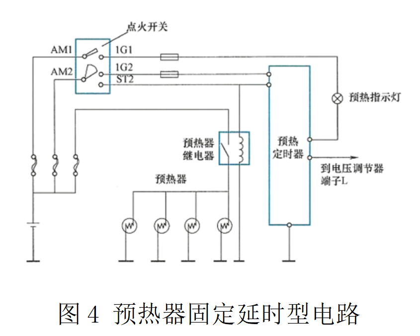 預熱系統(tǒng)的電路有兩種類型,即固定延時型電路和可變延時型電路。