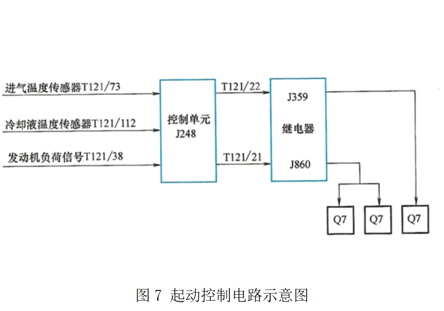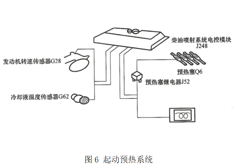 ③ 電控模塊控制型電路,起動預熱系統(tǒng)(如圖6所示)